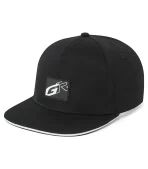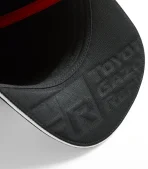 The TOYOTA GR black flat peak cap, brings a modern twist to the classic baseball cap, proudly displaying a unique, rubberised GR logo for immediate recognition. The design, featuring a structured crown, flat visor, and a subtly debossed logo on the underside of the visor.